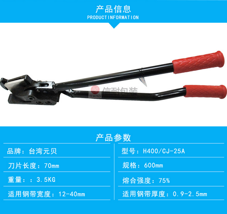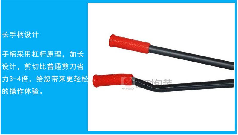 鋼帶剪是鋼帶捆扎包裝過程中不可缺少的輔助工具之一,鋼帶剪平常也稱為拆包剪或鋼帶剪刀,上海信耐提供長柄、中柄、短柄等多款鋼帶拆包剪,不同的型號適合的鋼帶寬度不一樣、長柄鋼帶剪可以剪斷50*2mm規格打包鋼帶、短柄鋼帶剪刀10*0.4mm