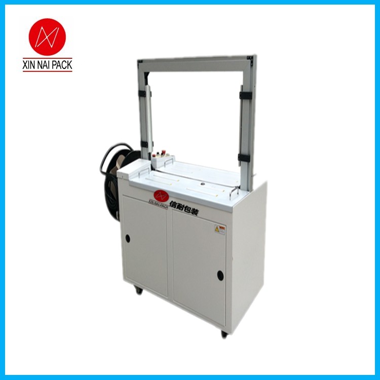 XN-MH101A自動捆包機(高臺標準型)可以自動打包,但臺面無動力,需要人工推一下,包裝物品才能通過打包機。該打包機的原理是使用,PP帶捆緊產品或包裝件,然后收緊并將兩端通過熱效應熔融或使用包扣等材料連接的機器。捆扎機的功用是使塑料PP帶能緊貼于被捆扎包件表面,保證包件在運輸、貯存中不因捆扎不牢而散落。捆扎機價格:全自動捆扎機價格或全自動捆扎機報價是半自動設備的兩倍多。