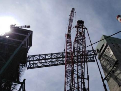 當(dāng)然真正吊裝時(shí)在地面上使用的依然是載重650噸的履帶吊車,在構(gòu)件吊裝過程中對鋼絲繩長度、吊點(diǎn)位置、吊耳安裝嚴(yán)格把關(guān),當(dāng)?shù)跹b就位的鋼通廊按設(shè)計(jì)要求與安裝位置、角度完全吻合時(shí),標(biāo)志著吊裝工作順利完成,在此次吊裝任務(wù),電動(dòng)葫蘆成為大型吊車的先行實(shí)驗(yàn)者,幫助工作人員得到一套專業(yè)的吊裝數(shù)據(jù)。